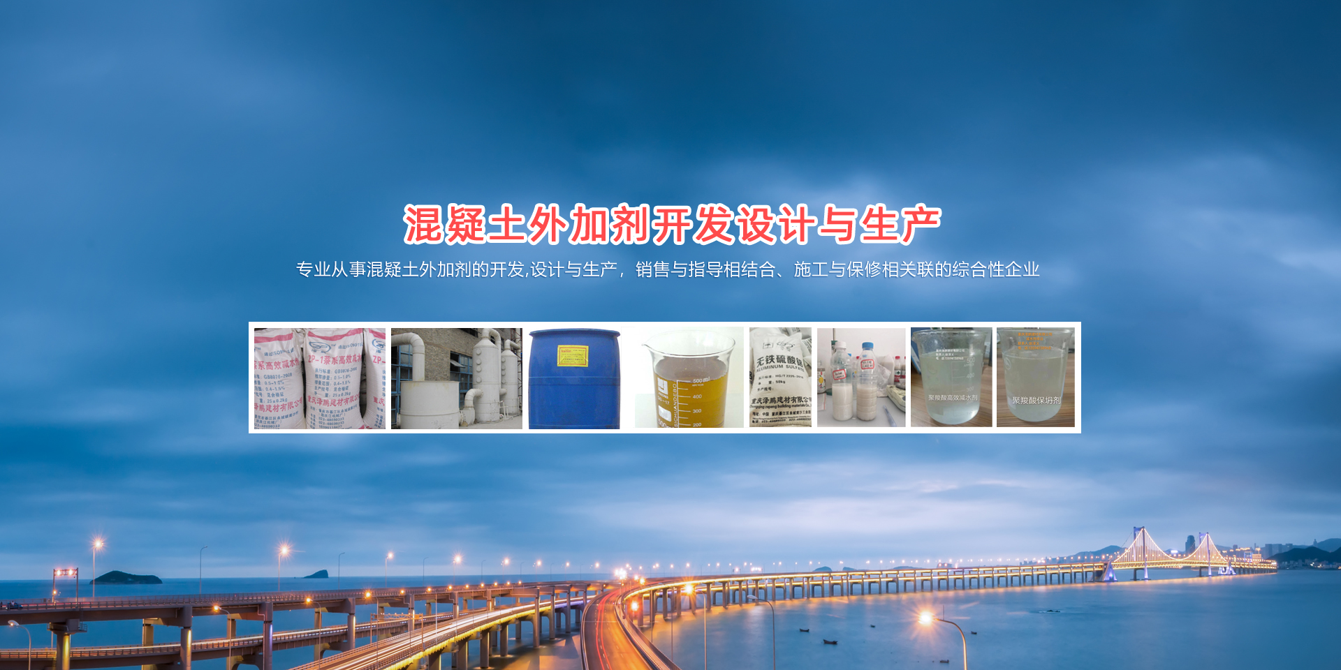 重庆泽鹏建材有限公司,位于重庆市綦江区境内,专业业从事混疑土外加剂的开发,设计与生产,本公司集科研、开发、销售及服务于一体的综合性企业。注册资本1000余万元。本公司位于重庆市綦江区永城镇(万盛经济技术开发区),有丰富的生产原材料作基础,占地13000平方米,建筑面积10000平方米,配备萘系高效减水剂自动化生产线三条,聚羧酸盐系高效减水剂自动化生产线一条,年产萘系高效减水剂5万余吨,聚羧酸高性能减水剂3万吨;脂肪族高性能减水剂3万吨,氨基磺酸盐高性能减水剂2万吨,复合外加剂系列产品3万吨。